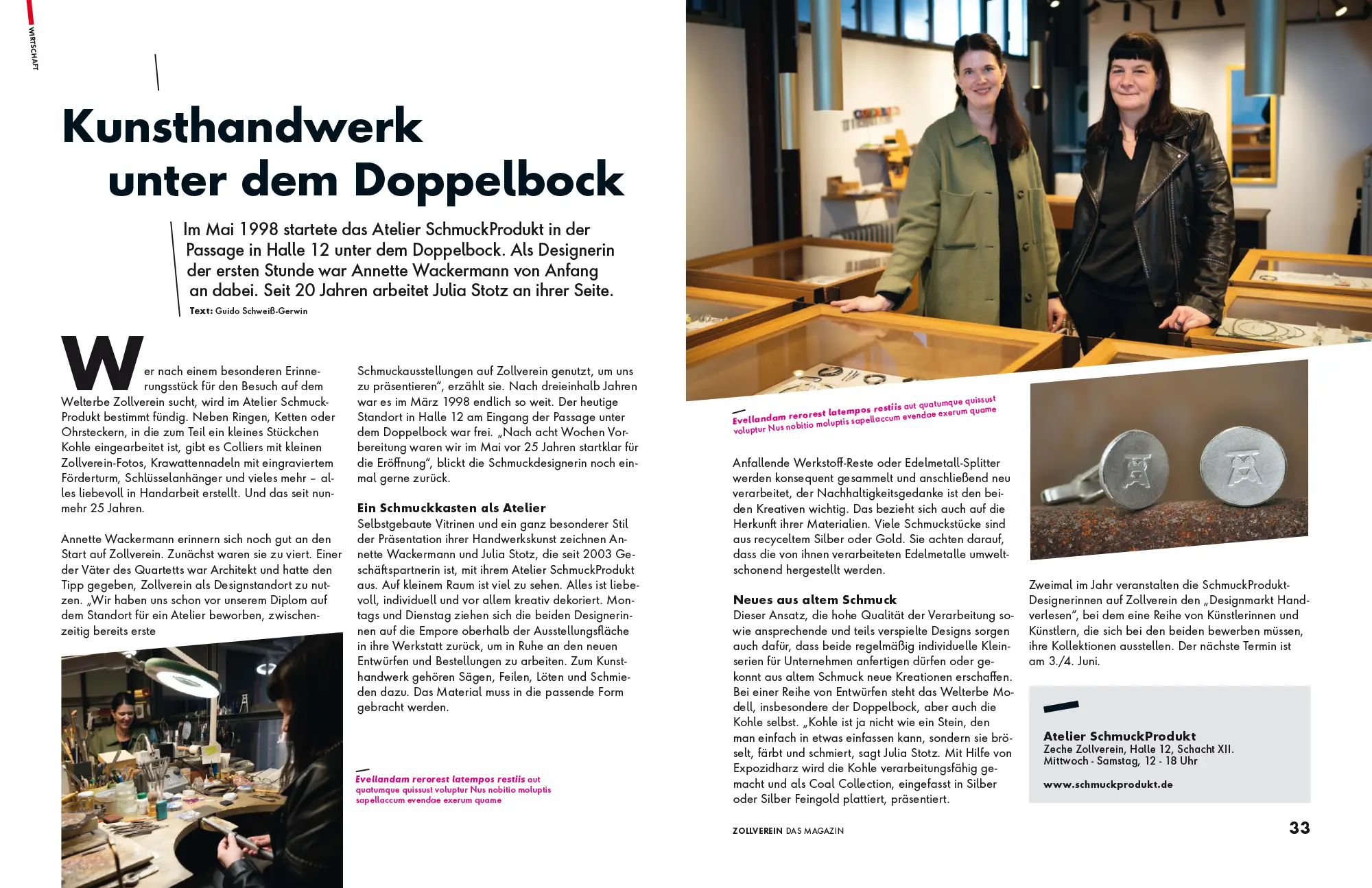 Annette Wackermann ist ausgebildete Graveurin und studierte Schmuck- und Produktdesign in Düsseldorf. Die Gründerin von SchmuckProdukt findet ihre Inspirationen in der Architektur, in der Natur und im Leben. Geometrische Formen spielen in ihren Designs eine große Rolle. Immer wieder verarbeitet sie kleine Fundstücke in ihren Schmuckstücken. Sie experimentiert dabei gerne mit unterschiedlichen Techniken. Mal wendet sie neuartige Techniken an, mal greift sie auf alte Techniken wie das Ätzen zurück. So entstehen Kollektionen, Arbeiten für Unternehmen, Museen und Einzelstücke, die immer genau auf die Person zugeschnitten sind.